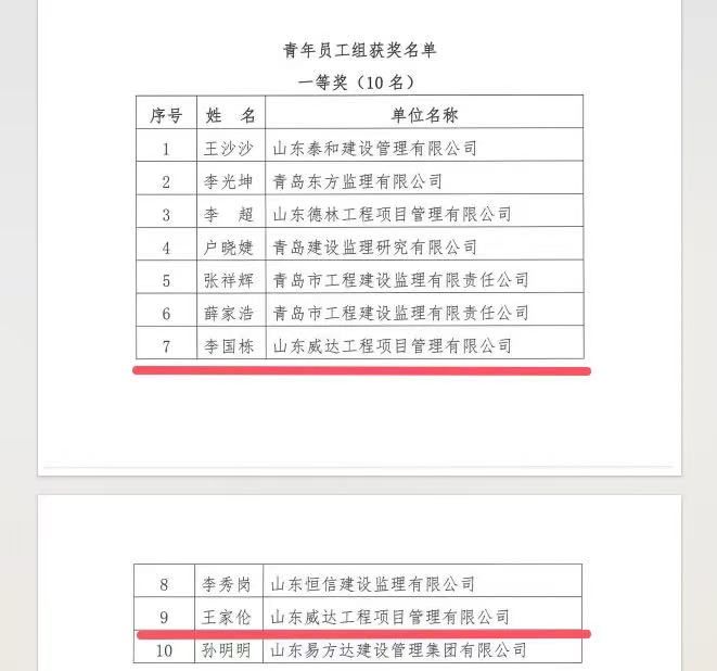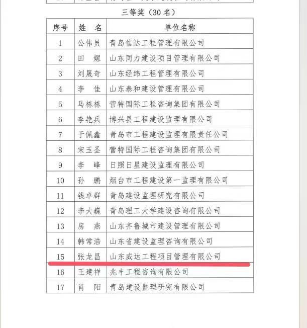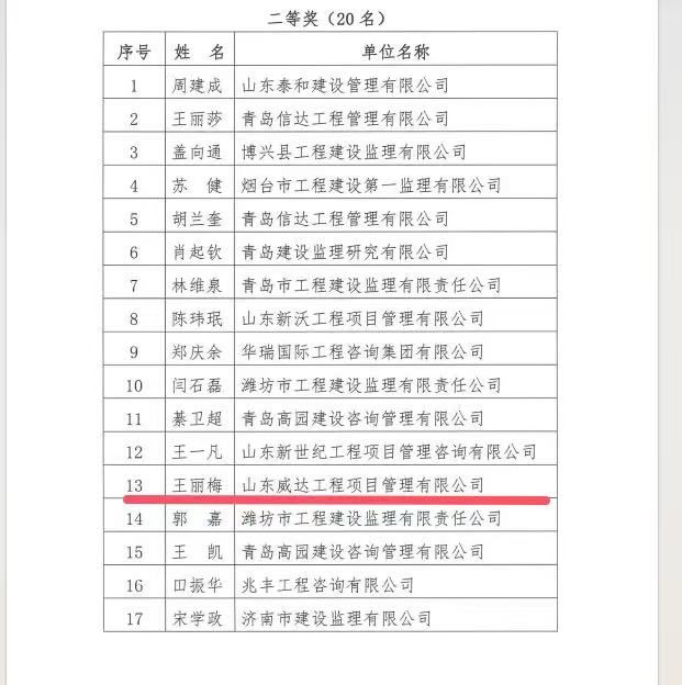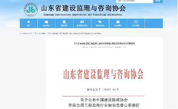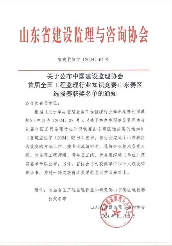 2024年11月5日,山东省建设监理与咨询协会公布了“关于公布首届全国问鼎在线官网(中国)行业知识竞赛山东赛区选拔赛获奖名单的通知”,在此次选拔竞赛中我公司取得佳绩 。